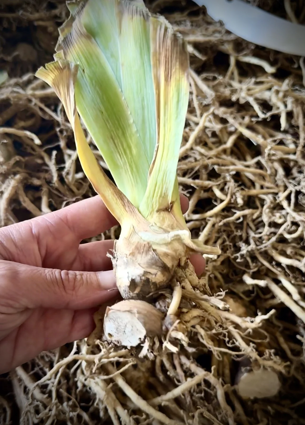 A 3-year-old bearded iris rhizome “circle” of 12 divisible rhizomes in our display garden. This plant could be divided into 12 new plants - or larger clumps with three rhizomes each to preserve flowering for each portion the following year. Single rhizomes can bloom the following year, but sometimes take a season to settle in.
